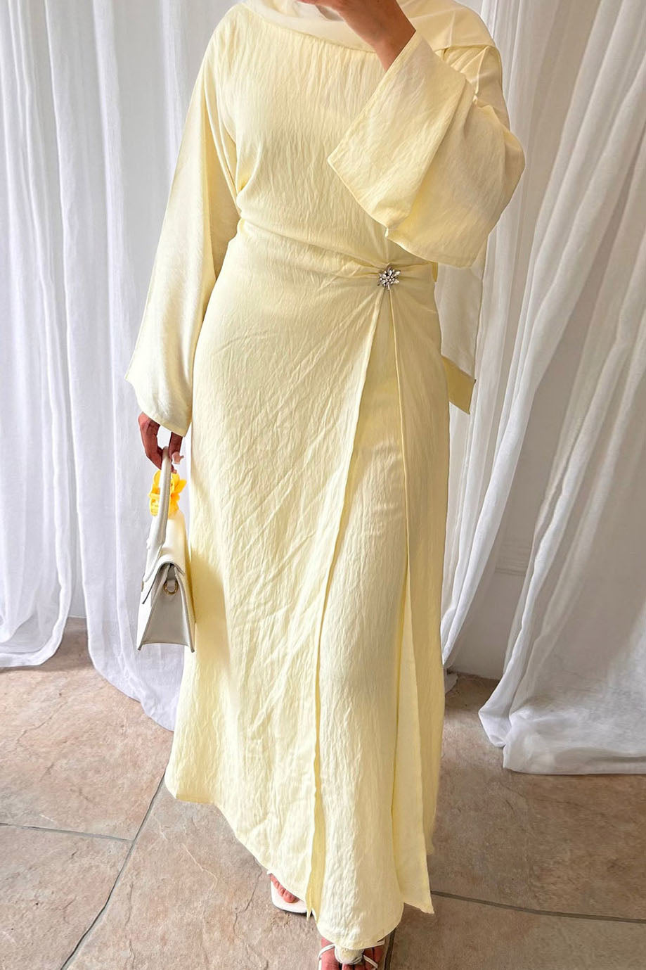 Aureya Solid Crystal-Embellished Faux Two-Piece Abaya 997 – Light Grey