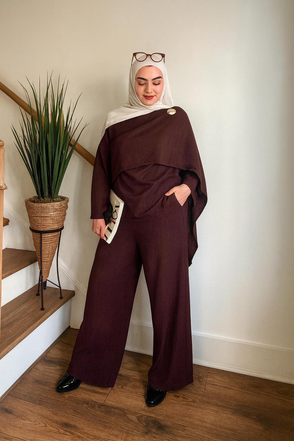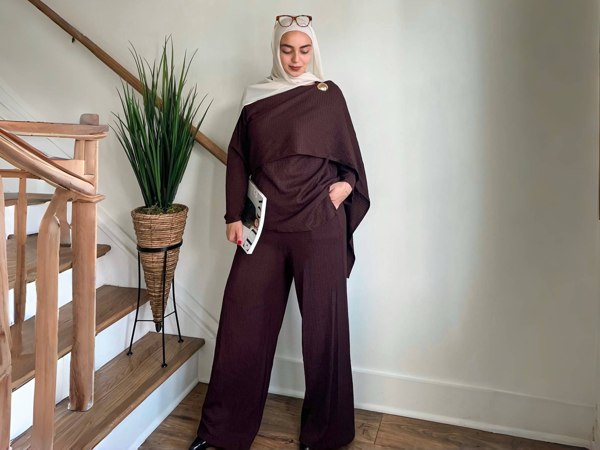 Samar 2-Piece Modest Matching Top + Pants Set 1034 - Coffee