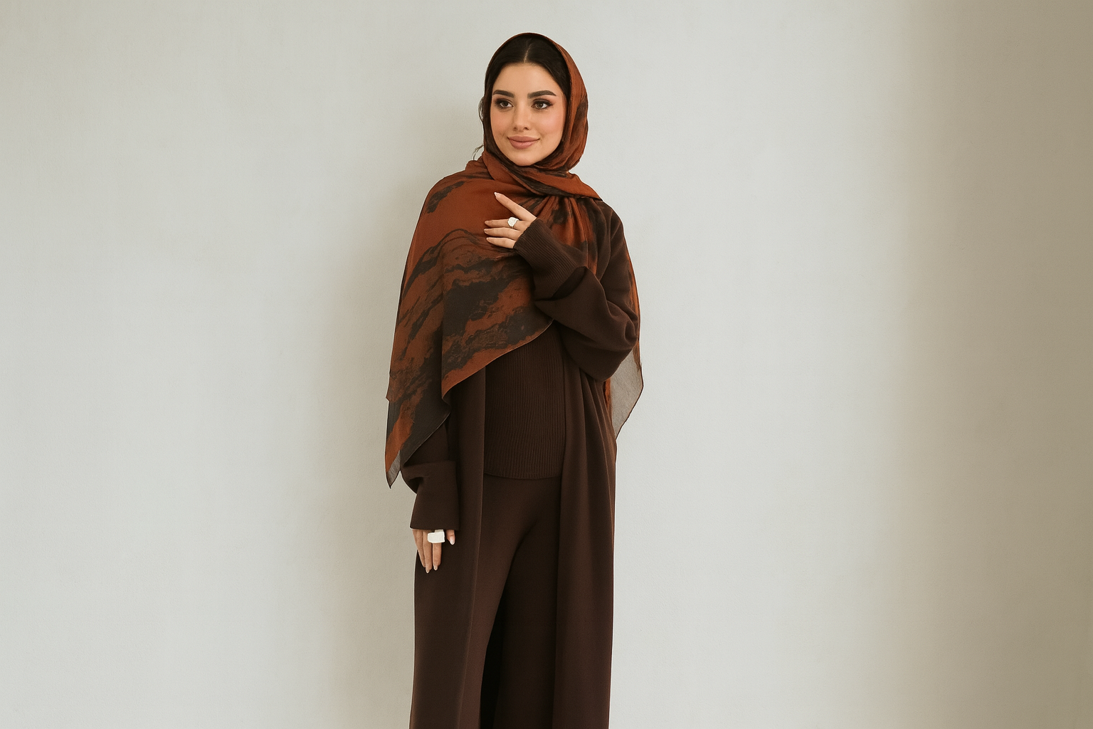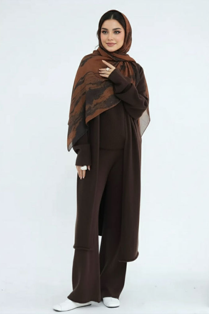 Asiya 2-Piece Modest Matching Open Abaya + Pants Set 1035 - Coffee